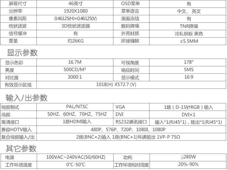3、支持7×24小时,365天连续开机,具有非常高的可靠性和稳定性且背光源长达60000小时的使用寿命。