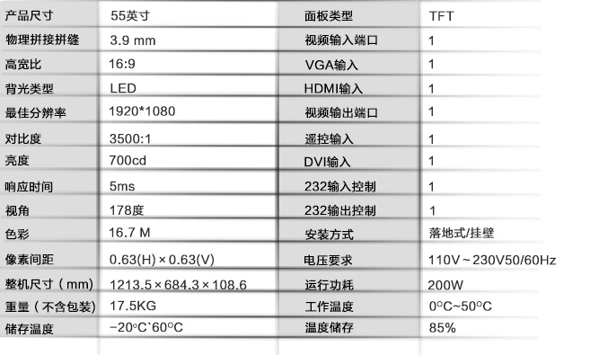 1:采用工业级专业DID液晶拼接屏,专为工业监控和多媒体信息显示而设计,可实现信号拼接显示,还可实现信号分割显示、开窗、叠加、跨屏、漫游缩放等特殊显示功能。