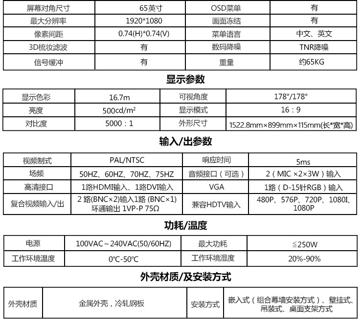 视频监控、电信、公共事业、过程处理、交通控制、安防监控以及国防、舞台娱乐、电视演播厅、股票证券、大型会展、商场、银行、办公大厅、公司迎客屏、专卖店、调度指挥等。