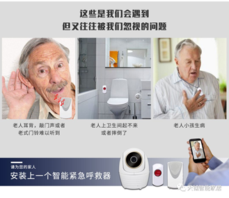 真的遇到意外,紧急呼救按钮能及时预警,避免事故再次发生! 现代生活,老人独自生活的越来越多,咱们就真的能放心吗? 静下心来,问问自己?还有小孩?还有宠物? 不放心 就安装渴视小管家吧.