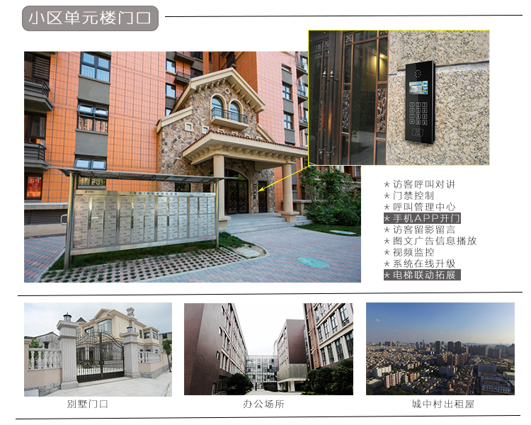 ◆住户门口:别墅门口机,(楼栋住户)小门口机,二次确认机;