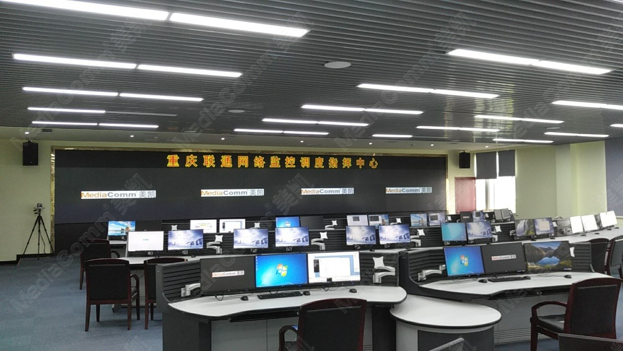 如今,随着移动通信业务的迅速发展,通信企业每天需要完成大量数据采集、传输与分析,以此保障区域通信网络的正常服务。重庆联通网络监控调度指挥中心是重庆区域移动网络通信的管控枢纽之一,通过KVM系统处理大量数据资源与视频信号,承担区域通信的稳定运行、通信保障、数据实时展示、突发事件应急调度等功能。MediaComm美凯应用先进的光纤KVM技术,为重庆联通网络监控调度指挥中心构建一套稳定高效的指挥控制系统,解决网络监控调度指挥的系统性难题,保障区域移动网络通信服务的正常运行。