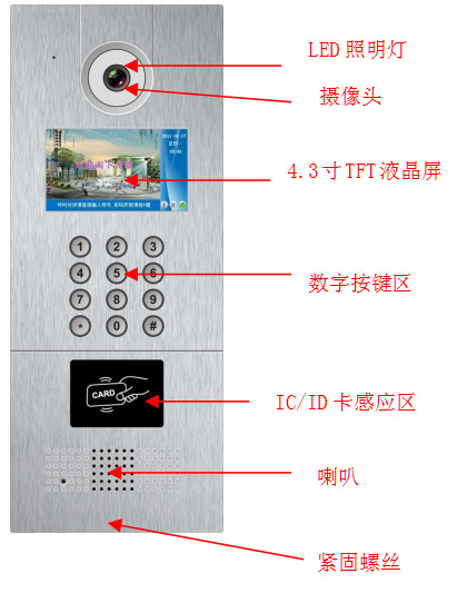 【楼宇可视对讲 4.3寸彩色数字可视对讲单元门口机 实现功能】