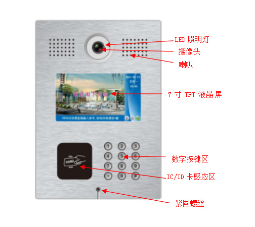 【楼宇可视对讲 7寸数字彩色可视对讲单元门口机 实现功能】