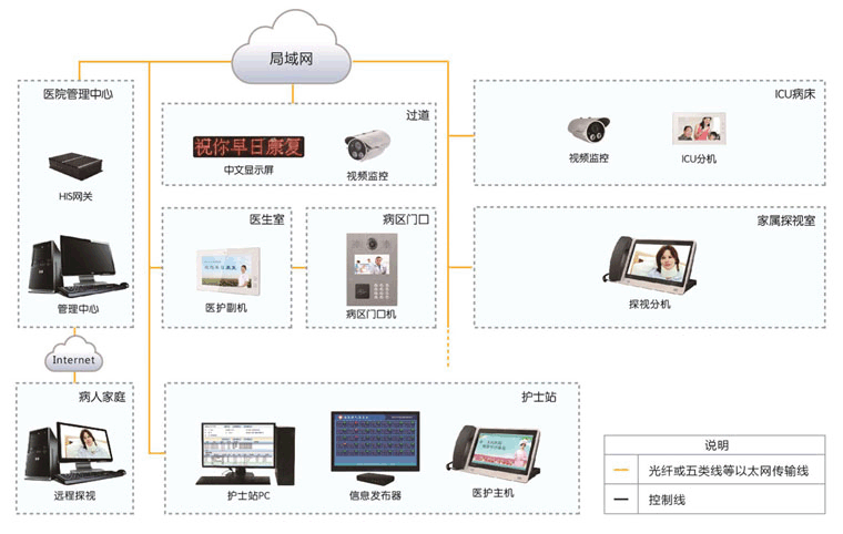 1、座式,放置在家属探视区桌面,供重病房的病人家属探视对讲时使用。