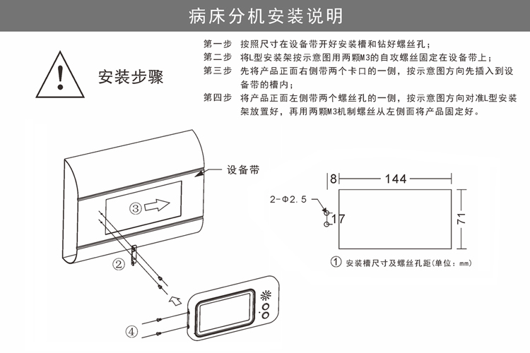 配合数模一体化病房分机使用;