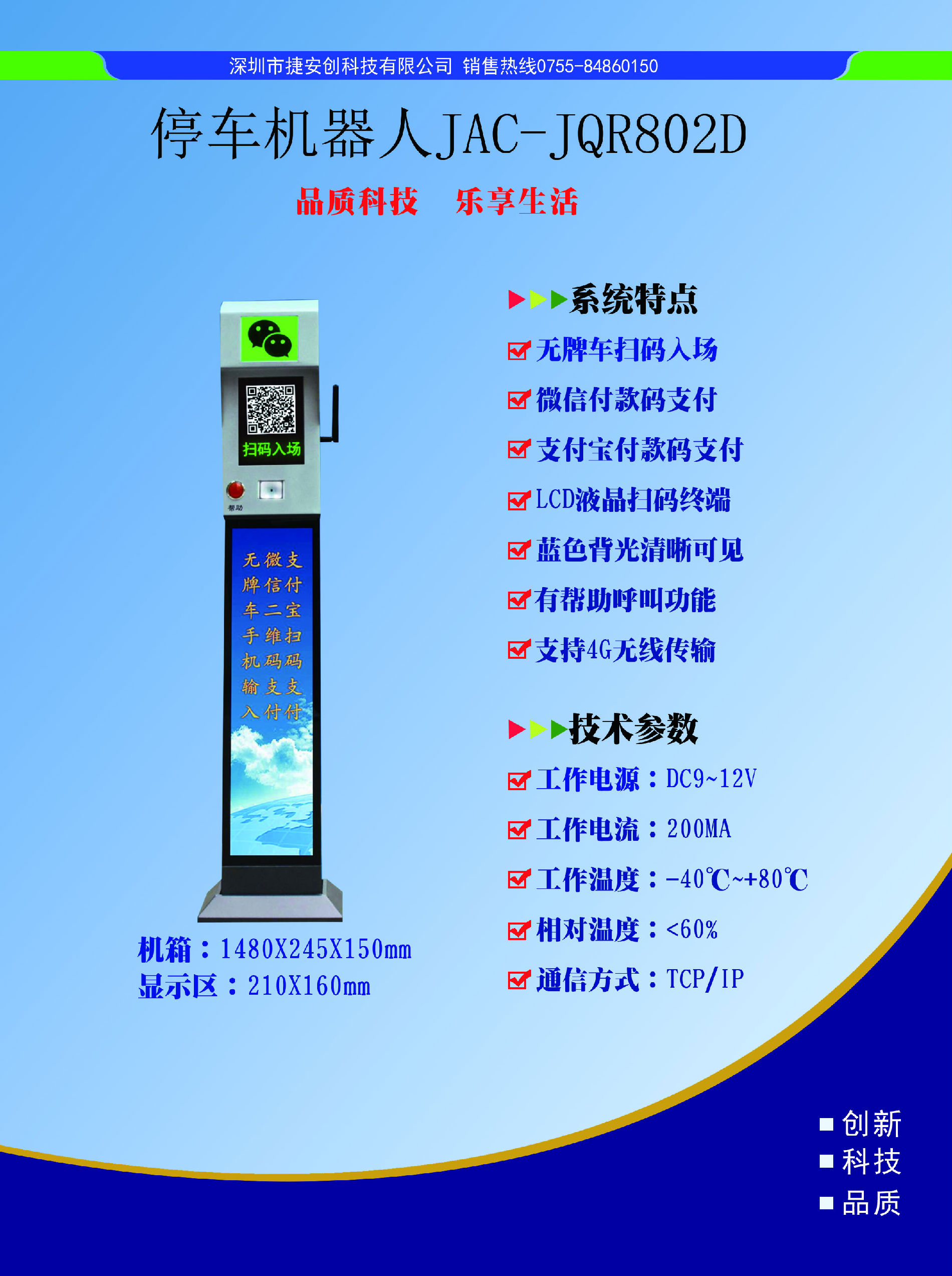 捷安创智能停车管理机器人 无人值守+云端管理智慧停车场方案 无人工降成本