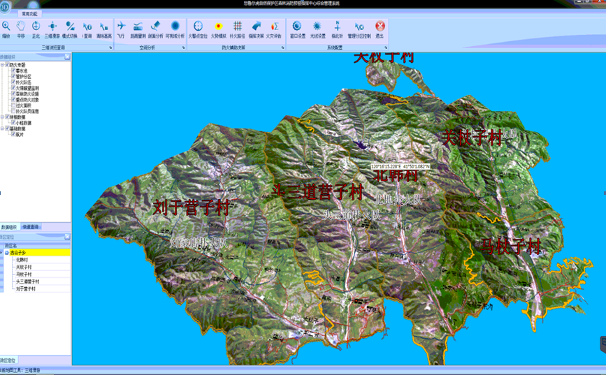 可以对本系统包含的基础地理数据、林相数据和防火数据进行组织管理