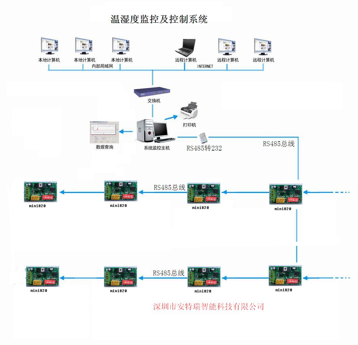 Mini820温湿度报警器是具有总线通讯联网功能的设备,并带有1路继电器输出。通过总线与远距离的中心设备(电脑)通讯实时显示当前温湿度值;带有地址编码设置开关。