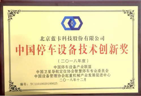 蓝卡科技荣获“中国停车设备技术创新奖”