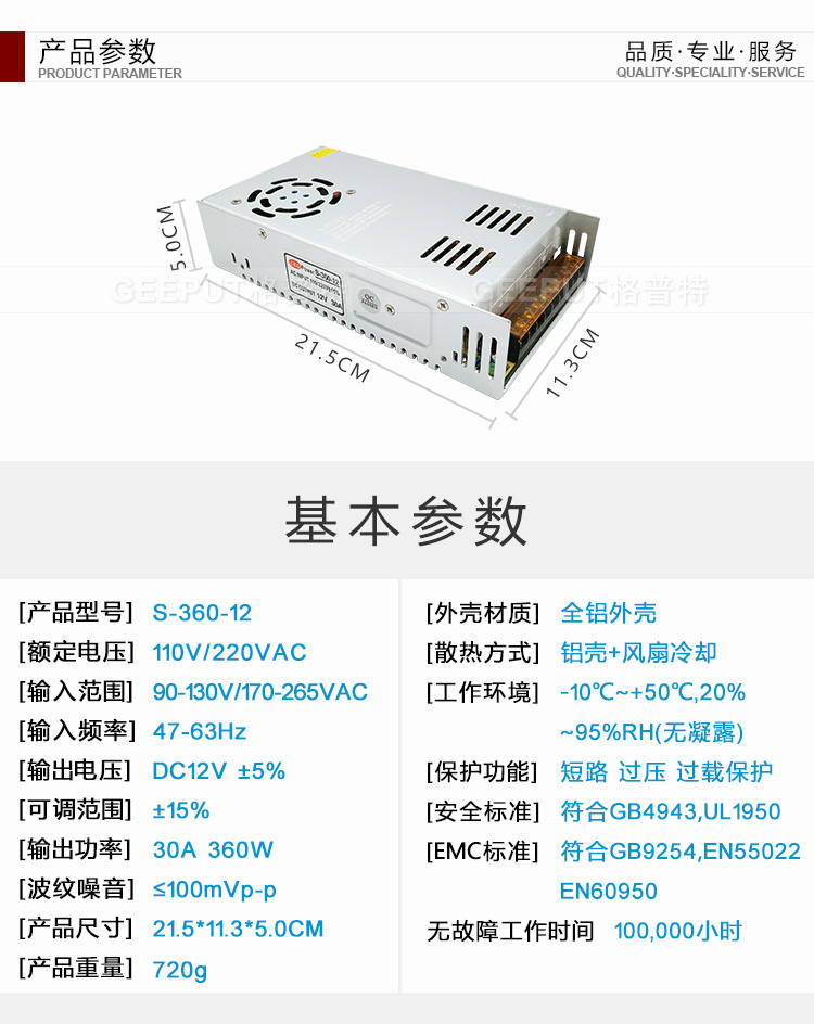 LED开关电源12V 30A 360W灯带灯条灯箱监控手机柜台电源变压器