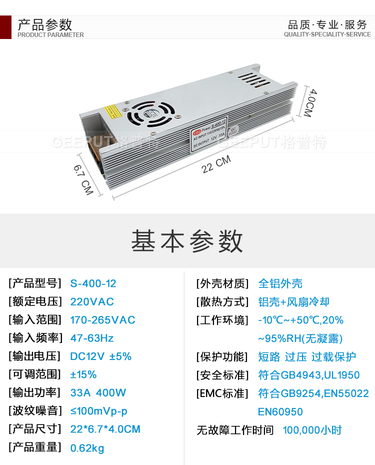 LED长条小体积超薄开关电源12V 33A 400W拉布卡布背景灯箱电源