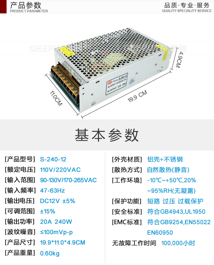 LED开关电源12V20A240W灯带灯条灯箱监控手机柜台电源变压器