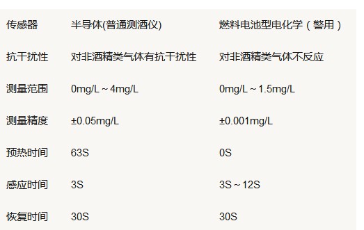目前普通使用的酒精传感器有燃料电池型(电化学型)及半导体型,与半导体型相比,燃料电池型呼气酒精测试仪具有稳定性好、精度高、抗干扰性好的明显优点,但由于燃料电池型酒精传感器的结构要求非常精密,生产难度相当大,目前世界上只有欧美和国内少数几个厂家能够生产,因此价格相较半导体型略高。而交警执法部门普遍使用燃料电池型(电化学型)酒精传感器,而网络购买的廉价酒精检测仪多采用半导体传器,测试结果容易产品偏差。