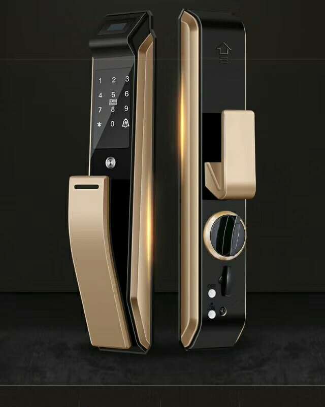 经典款F-22经过精雕细琢,有着唯美的造型,采用隐藏式指纹头,有效防护小孩玩弄、刮花,采用推拉式设计,解锁后推/拉即开门?,拥有指纹、密码、刷卡、APP,钥匙五种开锁方式。