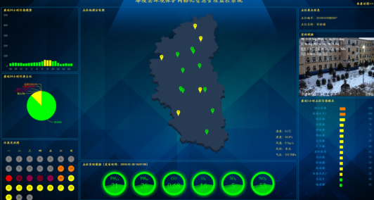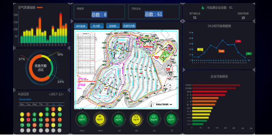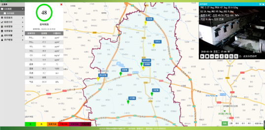 在应用层,可以GIS方式直观、形象的实时显示各监测点位和整个区域的空气质量状况,以及污染物浓度水平,并提供异常报警、区域空气质量变化趋势等多种服务。