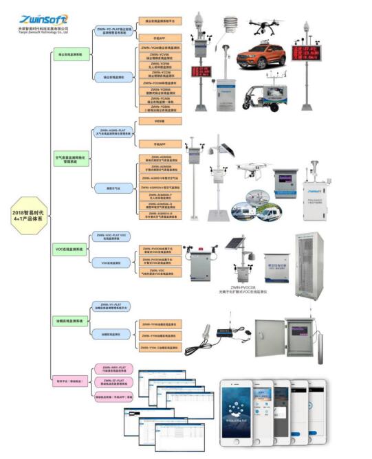 近年来,智易时代主要服务于环保监测领域,致力于各类环境要素的在线监测,以大气网格化精准决策支持管理系统为基础,不断深入,逐步细化,研发了:扬尘(视频)在线监测管理平台、VOCs在线监测平台、油烟在线监测平台、污染源在线监控中心平台和移动监管系统平台。同时研发了激光散射法(ZWIN-YC06系列)和β射线法(ZWIN-YCB06)扬尘在线监测仪、泵吸式(ZWIN-AQMS06)和扩散式(ZWIN-AQMS08)空气质量监测微型站、PID法(ZWIN-PVOCs)和FID法(ZWIN-FVOCs)VOC在线监测仪、油烟在线监测仪(ZWIN-YY06/08系列)等配套监测设备,形成了完善的智慧环保产品体系。