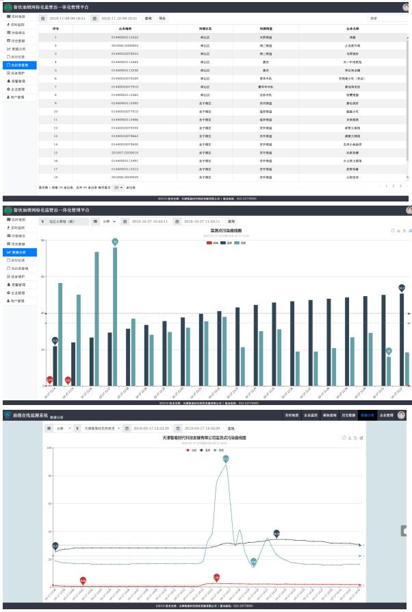 此版油烟在线监测平台数据传输满足《环保产品认证实施规则 饮食业油烟浓度在线监控仪》(CCAEPI-RG-Y-020-2011),可同时搭载多于6000台以上监测终端进行数据传输显示,并可按实际应用要求进行扩大。