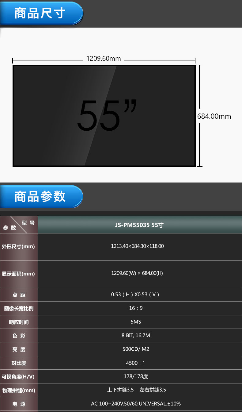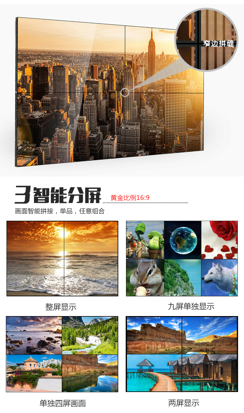 液晶拼接屏高清多屏拼接电视墙监控显示器1.8/3.5/8mm拼缝