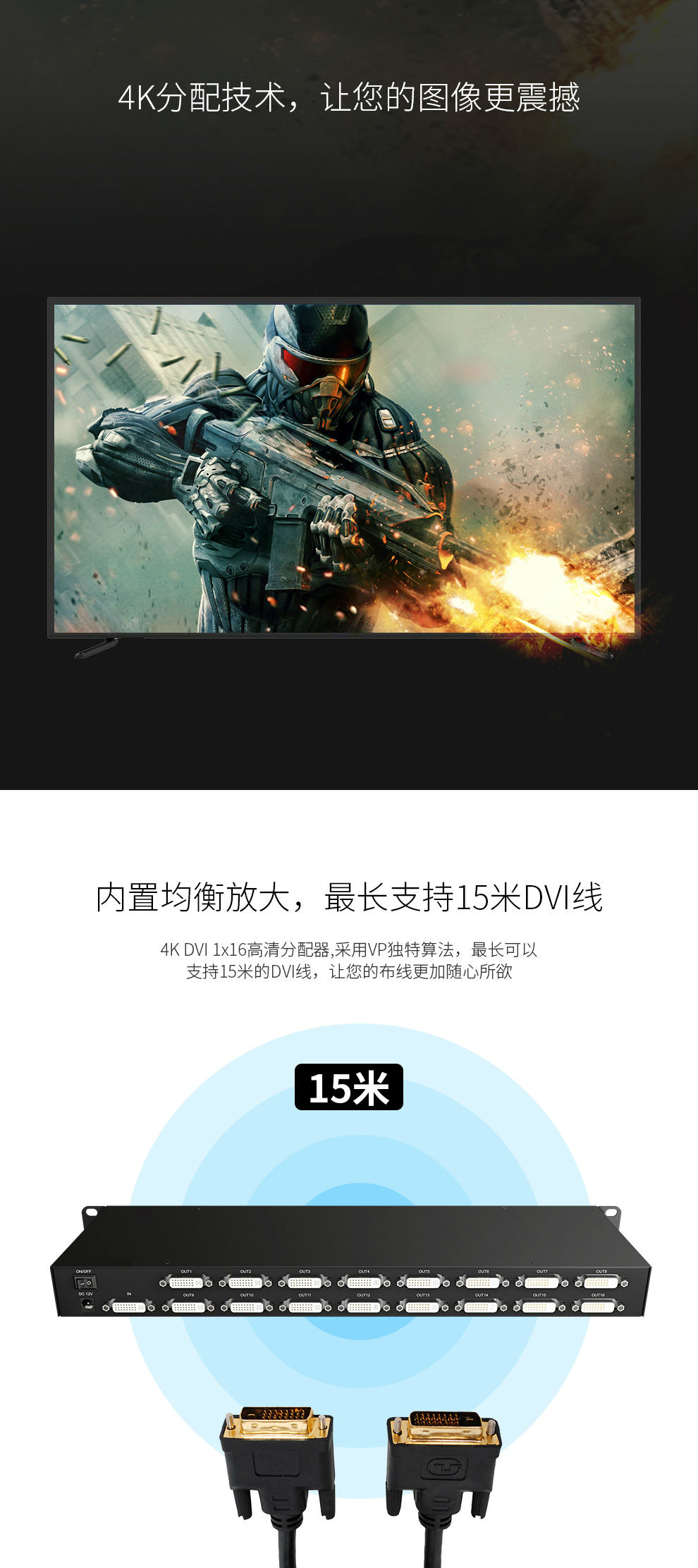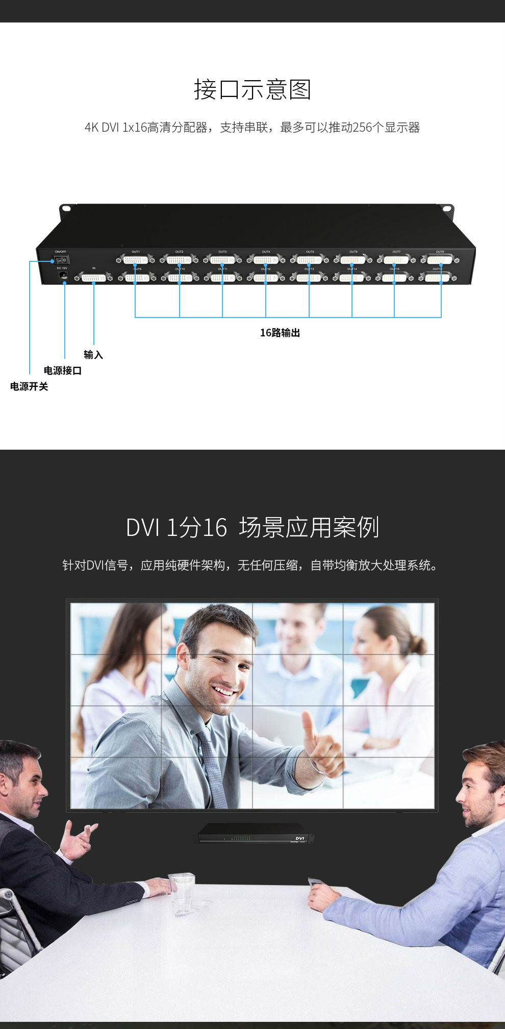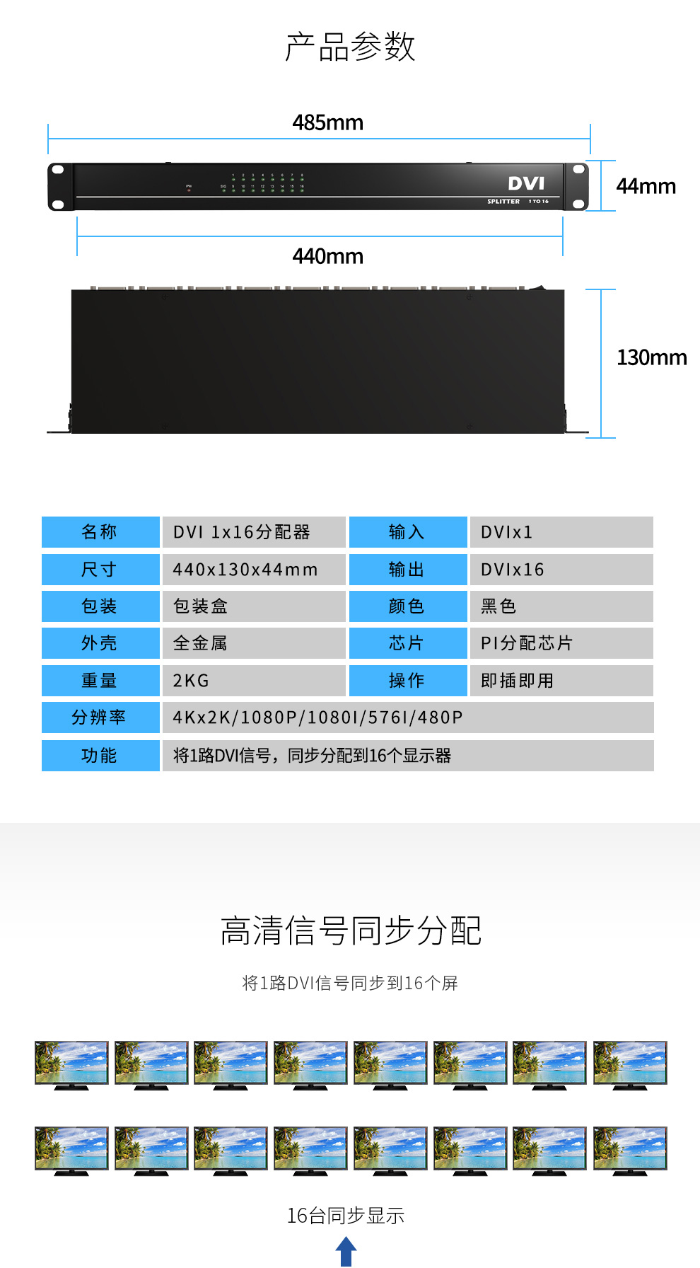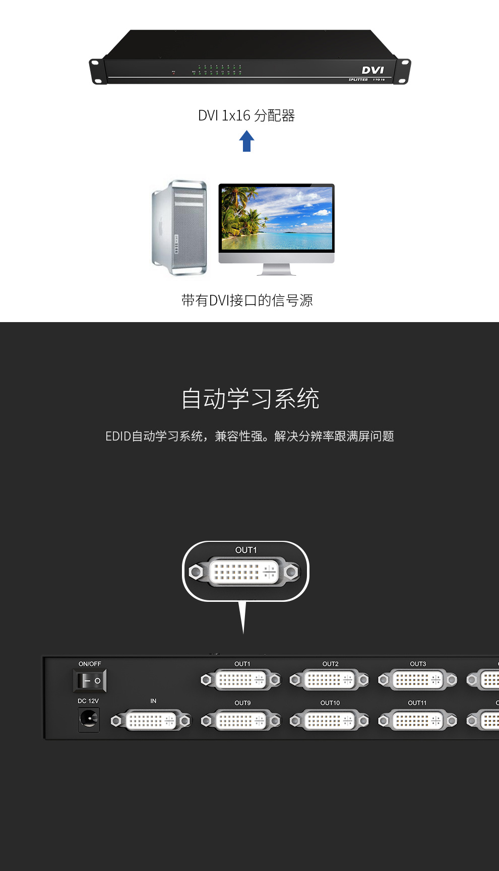 DVI分配器DVI1X161进16出16口DVI-D分配器DVI一分十六高清4K