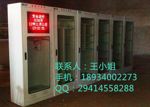 智能恒温除湿型安全工具柜,安全工器具柜,电力安全工具柜,安全工器具柜,智能安全工具柜,普通安全工具柜等)随着电力安监部门管理水平进一步提升,现有安全工器具的存放方法已经显现安全隐患。对电工作业工具的保护和正确使用提出挑战。我公司开发安全工器具的新型配套产品——集防潮、除湿、防尘、防损、整齐美观于一体的智能安全工具柜系列产品。 安全工具柜外壳使用优质冷板,采用艺术型静电喷涂,柜门选用高强度钢化玻璃,外观大方、美观。 我厂依据电力安全工器具放置的现场的大小及安全工器具的各类、数量设计定作。