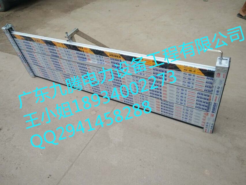 (2)防汛挡水板(防洪挡水板)表面处理:广东九腾电力设备有限公司地下停车场、地下车库、人防工事、地铁、地下立交桥防汛挡水板(防洪挡水板)表面经过防腐处理,坚硬、美观。挡板上方50mm处贴有黄黑相间的反光条,可在灯光或其他光源的照射下反射光线,起到对人员的警示作用,方便人员进出!