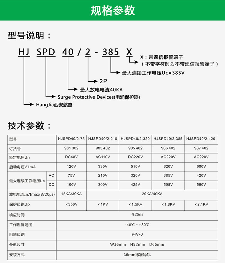 HJSPD40/2-385电源电涌保护器使用说明