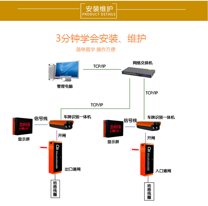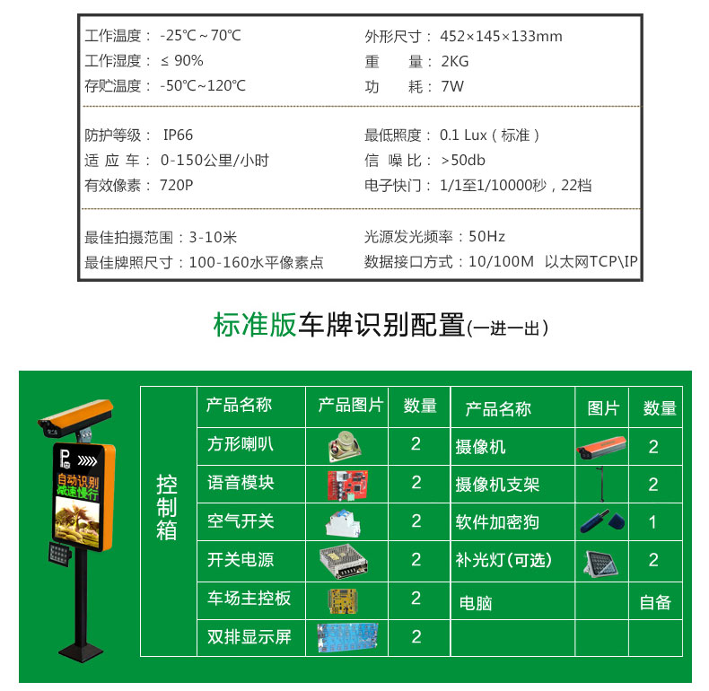 车牌识别分体机: 主要用于社区出入口管理,具有快速打开、安全、方便等特点,是车辆高频率出入通道的理想管理疏导设备。广泛应用于机场、小区、停车场、等车辆管理场所。
