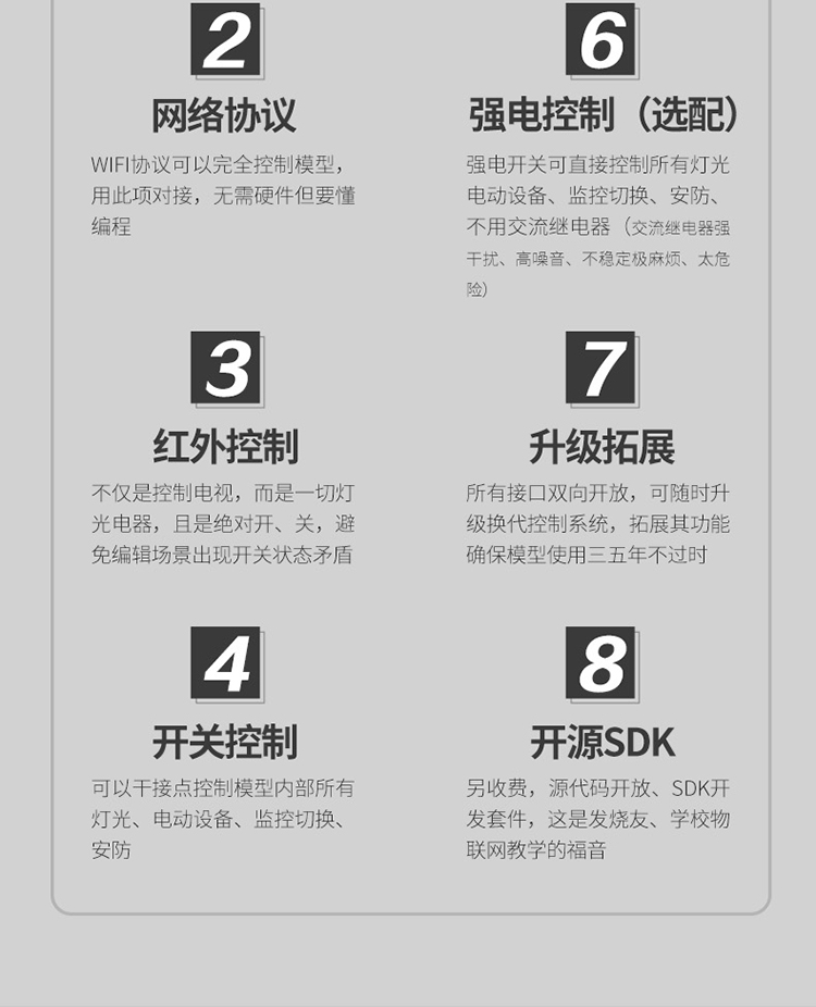 智能家居控制系统、智能演示建筑模型的研发、制作与销售。