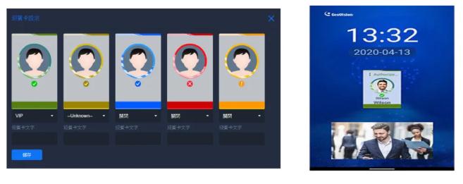使用移动端应用程序GV-Welcome,可以自定义分类人员相片画框颜色型并且自定义迎宾欢迎词,同时亦可自定义上传专属迎宾图片。