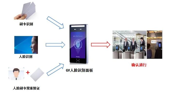 FR Panel作为门禁读卡机可以单机独立使用, FR Panel支持三种识别模式:人脸识别模式、读卡模式、读卡+人脸识模式,客户可以按自己实际的安全需求进行自由功能选择。