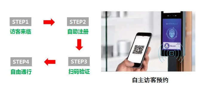 FR Panel全新升级优化了访客管理功能,客户通过访客界面自助注册后将接收到临时通行的二维码,访客直接在手机上展示二维码,使用FR Panel内置的扫码器将直接验证放行。
