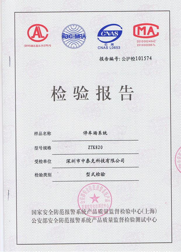 停车场检测证书