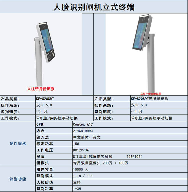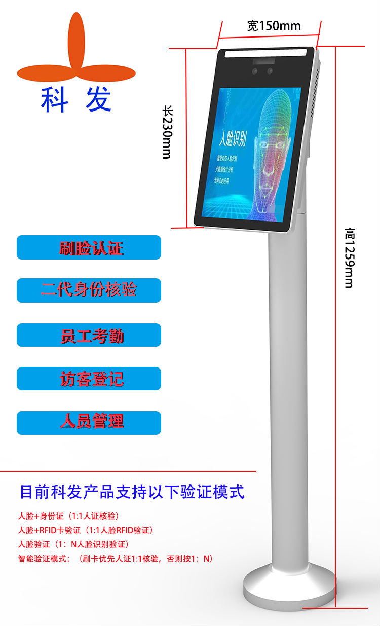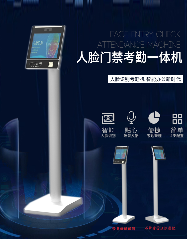 考勤门禁一体机 人脸识别门禁系统 落地式面部打卡机签到门禁机
