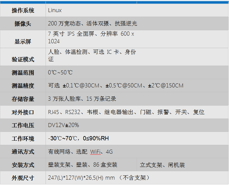 ◆ 支持人体温度检测、温度显示功能,体温异常自动报警