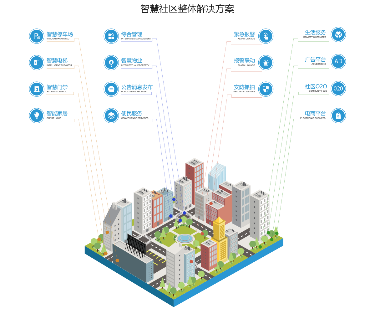 居民,物业,政府,电商,新媒体,开发商,弱的集成商,周边环境为一体大大减少了成本,提高了社区整体生活水平,让社区生活更便捷,更安全,更丰富。