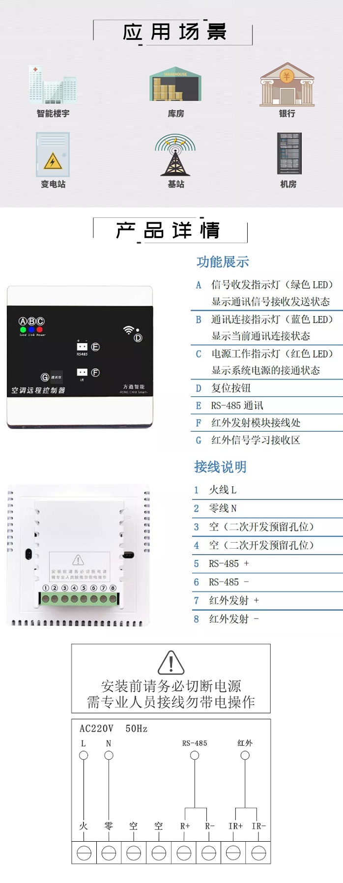 RS485远程空调控制器仓库普通空调专用方遒智能性能稳定