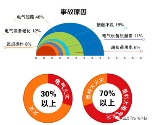 当电气设备负载过大时,如导线过载:导线流过的电流超过了安全载流量;或者一般导线最高允许工作温度为65°C。过载时,温度超过该温度,会使绝缘迅速老化甚至于线路燃烧。智慧用电安全管理系统会根据设定的报警值及时发出过载预警,避免有过载引发的电气安全事故。