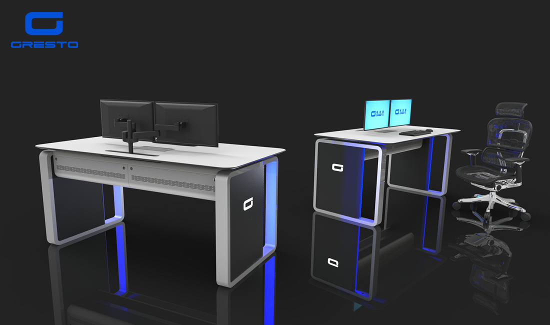 操作台由台面部分,柜体部分,键盘抽屉,柜内可调节托板,开孔面板,显示器安装背板,可配脚踏板等等组合