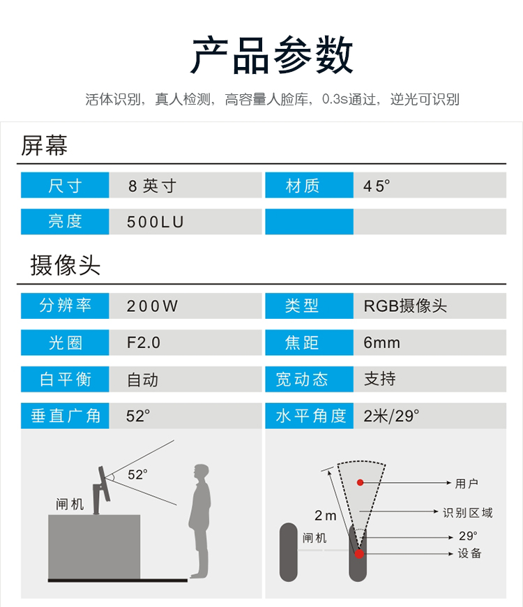 1秒识别准确率达99.9%,高清宽动态双目活体检测,内置安卓系统,自带算法,免费系统对接,提供SDK,API二次开发,防尘防水,立柱/桌面/壁挂可选,支持ODM,OEM定制。详情请咨询17628303725张经理,欢迎广大朋友来工厂洽谈合作.
