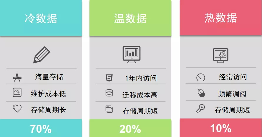 大数据时代,存储需求与日俱增。数据统计,目前非结构化数据已占到数据总量的80%以上。著名研究机构Gartner也表示,全球信息量正在以59%以上的年增长率快速增长。 这些电子数据,从应用的角度来讲,逐渐由热数据转化成温数据,最终变成冷数据。冷数据并非失去价值,用热数据的存储方式保存冷数据必将消耗大量资源。