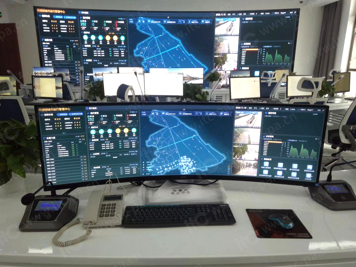 近年来,某地通过科技赋能精细治理,挂牌成立城市运行中心,itc分布式综合管理平台、LED显示屏系统、会议扩声系统助力该城运中心完成指挥大厅升级改造。