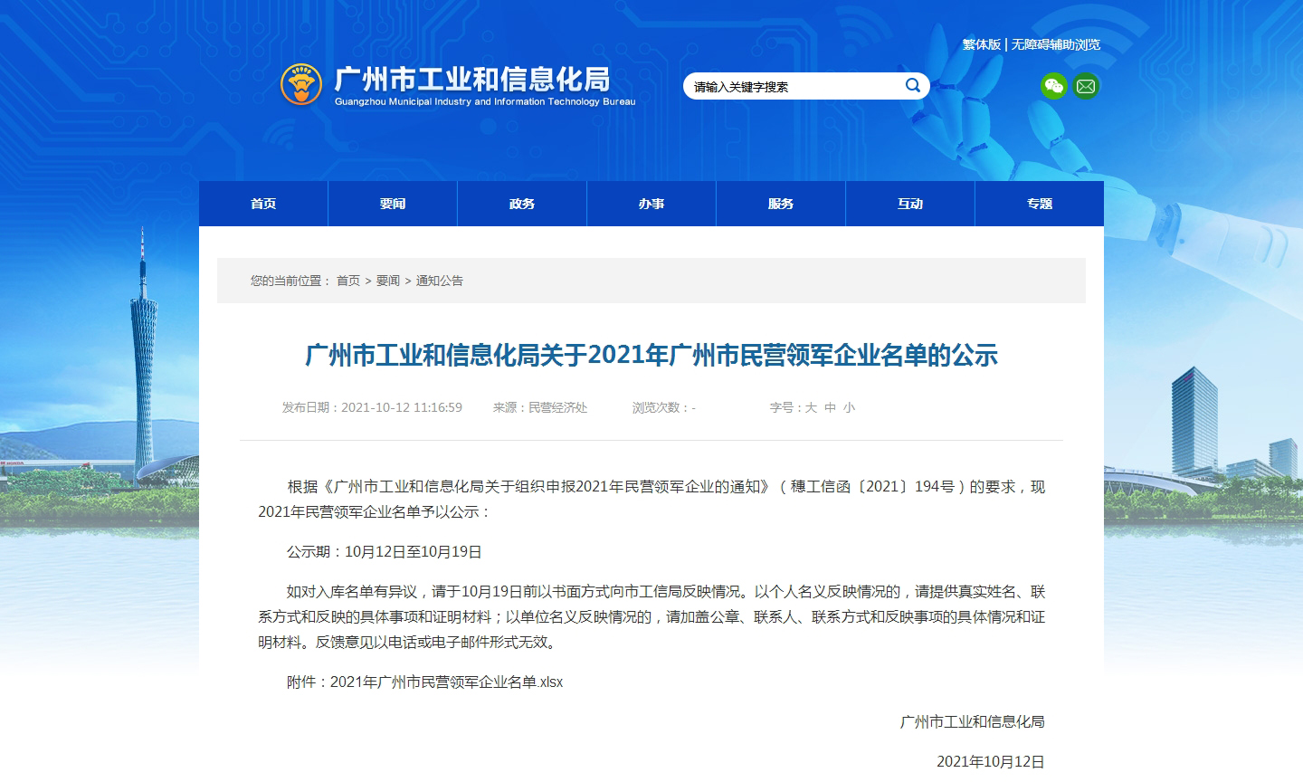 广州市工业和信息化局发布了