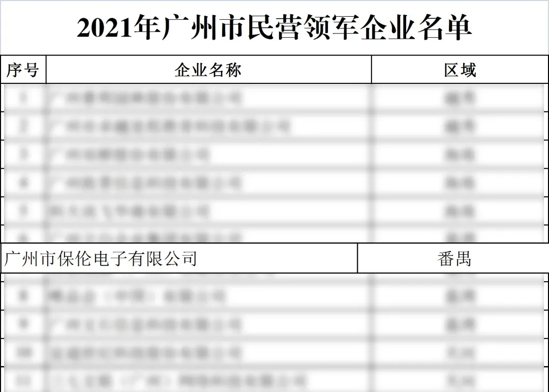 【牛牪犇!!!】热烈祝贺保伦电子itc成功入选2021年广州市民营领军企业!!!