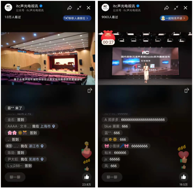 超10000人参与了本次发布会,专业探讨5000余次,点赞超240000次,直播间更有200只itc蓝牙音箱、5部华为手机等丰厚礼品抽奖,本次发布会效果显著,跨越顶尖技术,极致全息视听,耳目所及皆为震撼!