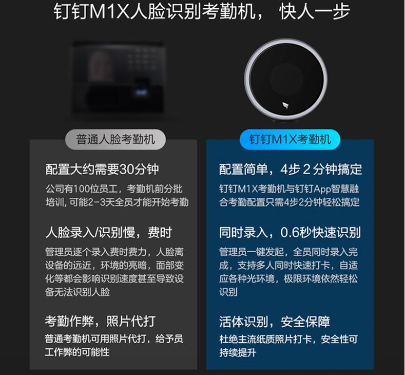 4步2分钟,轻松配置,钉钉M1X考勤机与钉钉App智慧融合考勤配置只需要4步2分钟轻松搞定;