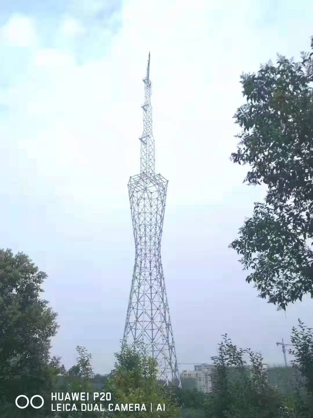 电视塔,广播电视铁塔立面廓线通常采用多折线型,既美观又能使基础受力小,整塔稳定性好。平截面形状有三角形、四边形、六边形等。