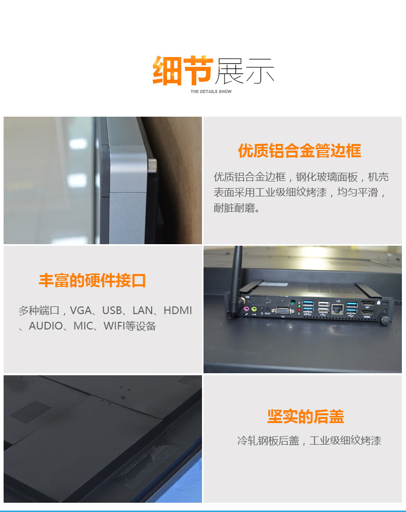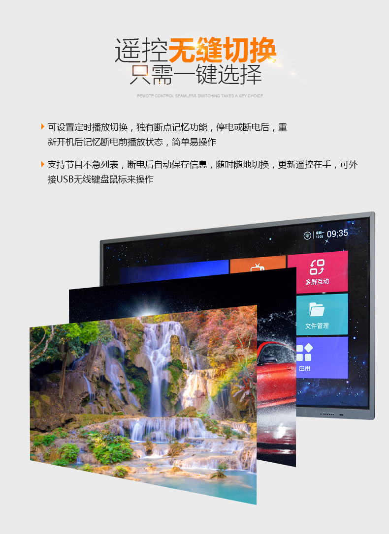 众视广目前生产18.5寸到100寸液晶显示设备,主要包括液晶广告机,楼宇广告机,立式广告机,落地式广告机,蓝牙广告机,框架广告机,互动触摸广告机,超市卖场广告机,3G网络广告机,无线网络广告机(广域网或局域网);网络播放盒,单机播放盒,车载广告机,出租车广告机,无线车载广告机,货架广告机,多媒体广告机,数字标牌广告机,广告机外壳,触摸一体机,触摸茶几,教学触摸一体机,液晶拼接墙,液晶监视器,电子公告牌,户外LED广告系统液晶广告机,实时流媒体发布系统,IPTV,楼宇广告系统;基于嵌入式LINUX系统,支持流媒体播放,标准realrtsp协议等媒体显示系列产品。