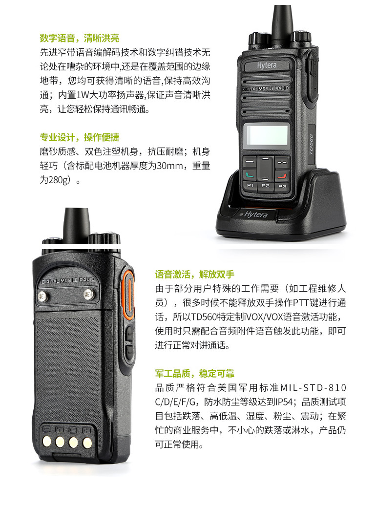海能达TD560商业数字对讲机语音清晰DMR模式数字模拟两用专业手台
