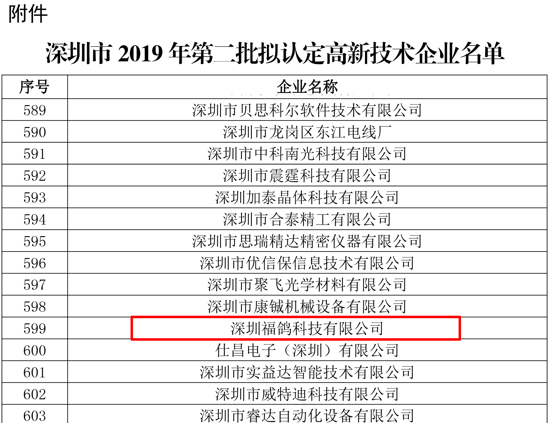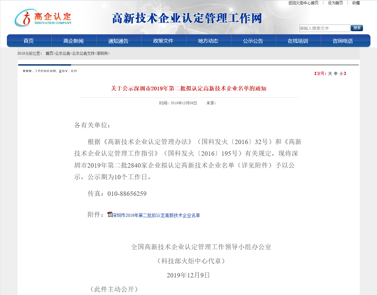 近日,根据《高新技术企业认定管理办法》(国科发火〔2016〕32号)和《高新技术企业认定管理工作指引》(国科发火〔2016〕195号)有关规定,深圳市2019年第二批拟认定高新技术企业名单发布了公示,福鸽科技榜上有名,荣膺“国家高新技术企业。”